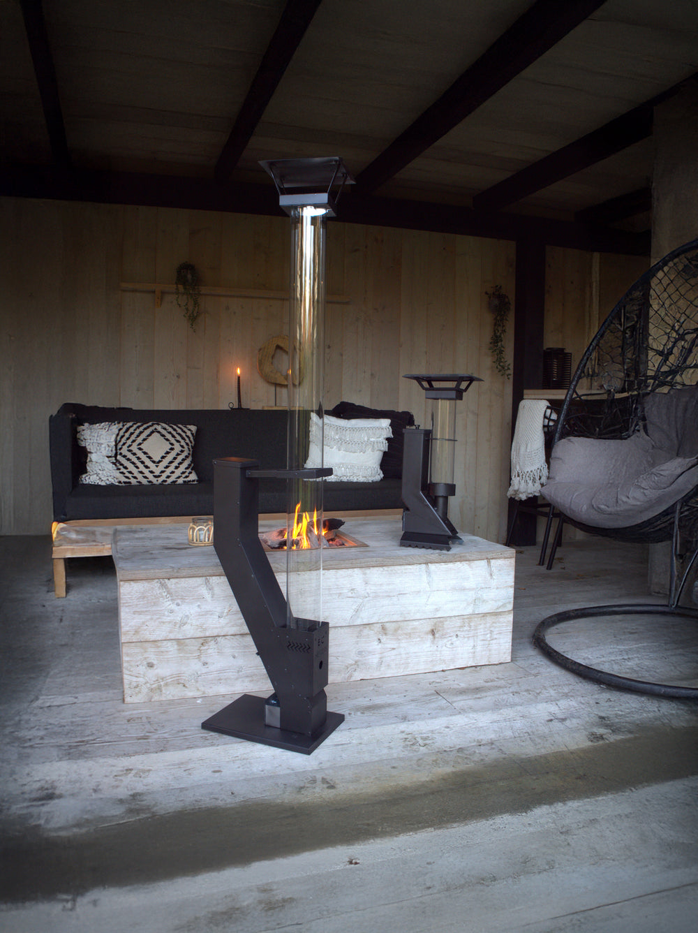 Zeker! Dit product is ontworpen voor veilig gebruik in overdekte omgevingen zoals patio’s of veranda’s. Zorg wel voor minimale ventilatie door bijvoorbeeld een raam of deur op een kier te zetten, zodat je onbezorgd van de vlammen kunt genieten.